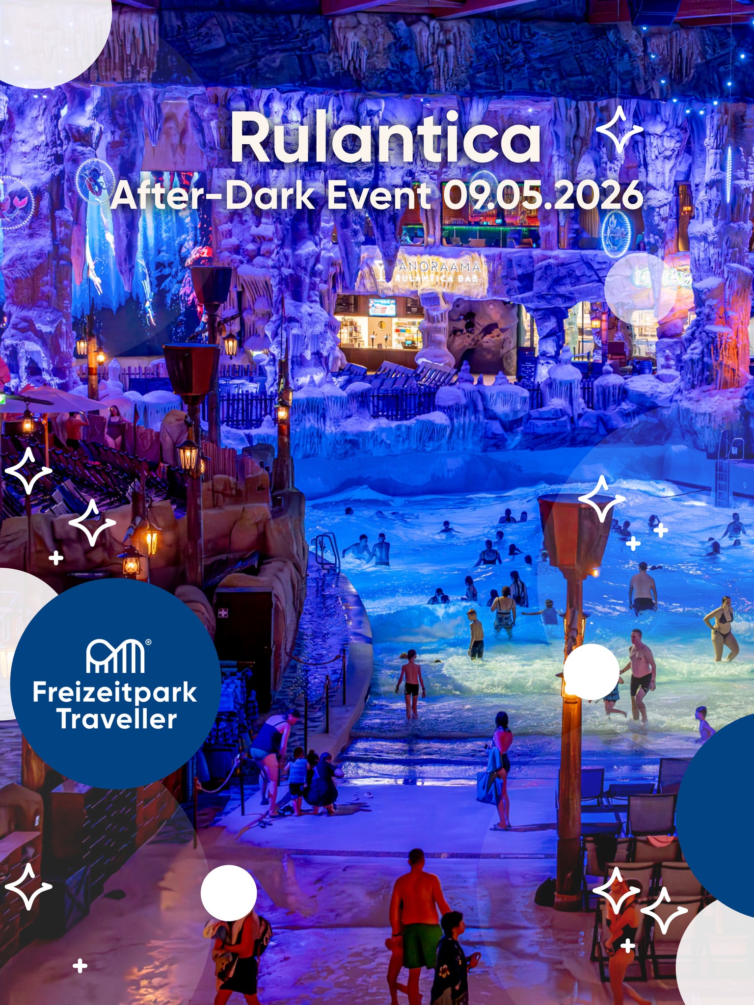 - 1x Boarding Ticket (Eintrittskarte) zum Freizeitpark Traveller After-Dark Event am 09.05.2026 in der Wasserwelt Rulantica