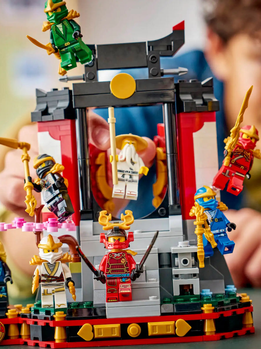 - NINJAGO® KLOSTER: Auf dem grandiosen Ninja-Spielzeug können 8 Minifiguren ausgestellt werden. Das Modell hat Stufen, aufklappbare Türen, einen blühenden Kirschbaum und eine Teestube auf der Rückseite
